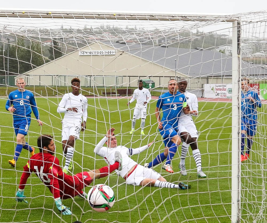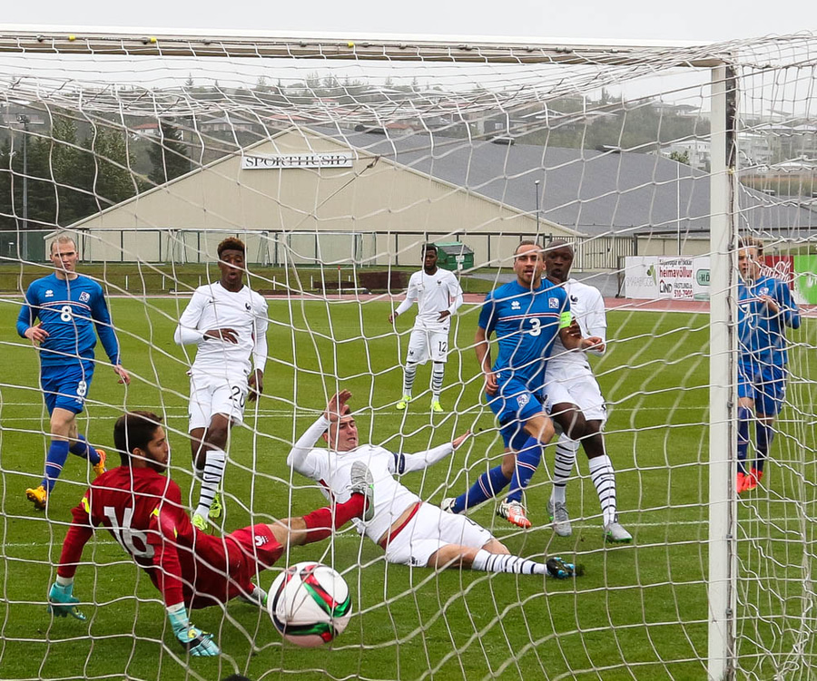 MAAAAAAAARKK!!! LE TIRE ET LE BUUUUT!!!!!! ÍSLENDINGAR SKORA EFTIR HORNSPYRNU!!! BÖDDI LÖPP KEMUR MEÐ BANVÆNA SPYRNU Í TEIGINN, ADRIEN RABIOT KIXAR BOLTANN ÚT OG ARON ELÍS MÆTIR Á FJÆRSTÖNGINA, SKALLAR FYRIR OG Á HJÖRT SEM STANGAR BOLTANN Í NETIÐ!!! 2-1 ÍSLAND!!!