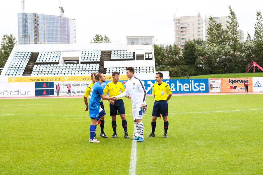 Þá er leikmannakynningunni lokið á liði Frakklands. Íslensku leikmennina þarf ekki að kynna. Þeir spila kannski ekki fyrir PSG, Athletic Bilbao, Bayern Munchen eða Aston Villa, en það vantar þó ekki að við erum með hörkumenn í þessu liði. Betri einstaklingar í liði Frakklands? Jú líklega. Betri liðsheild í liði Íslands? Pottþétt!