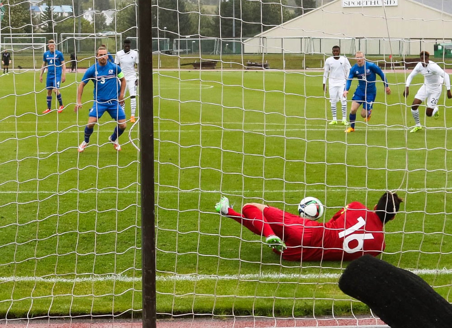 Mark úr víti!Oliver Sigurjónsson (f) (Ísland U21)