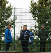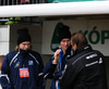 Það eru rúmar 20 mínútur í að leikurinn hefjist. Menn eru í góðum gír að hita upp, hlaupa og halda á lofti og svona. Frakkarnir eru að gera einhverja ruddalega upphitunaræfingu.