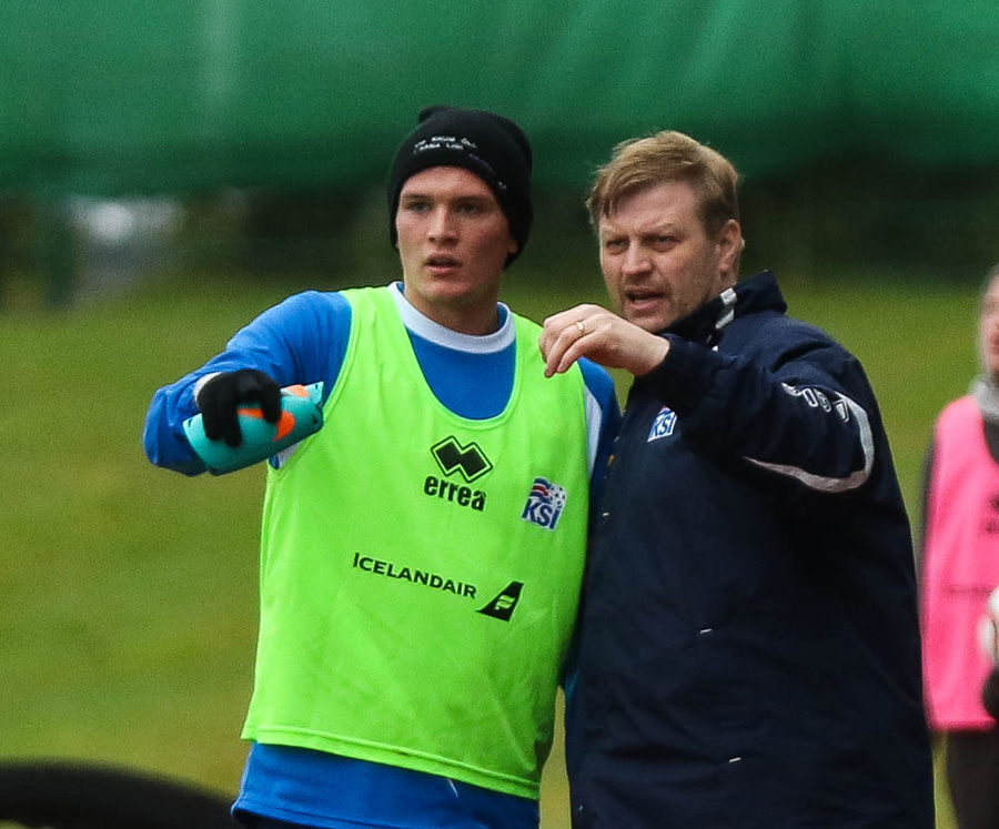 Frederik Schram mun standa á milli stanganna í dag þar sem Rúnar Alex Rúnarsson er meiddur. Frederik er uppalinn í Danmörku og spilar með Vestsjælland. Hann átti frábæran leik gegn Dönum í seinni leiknum á Laugardalsvelli í umspilinu fyrir EM 2015, sem Íslandi mistókst að komast á.