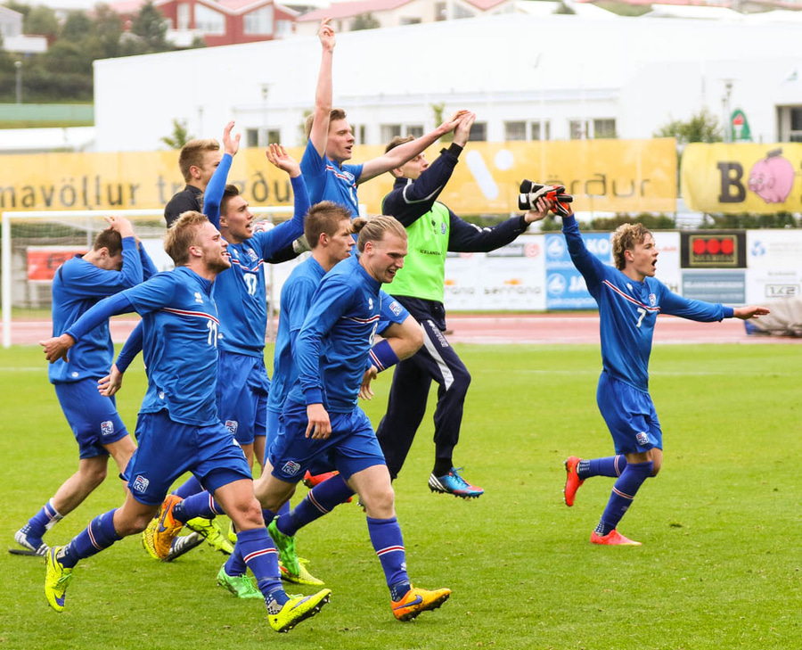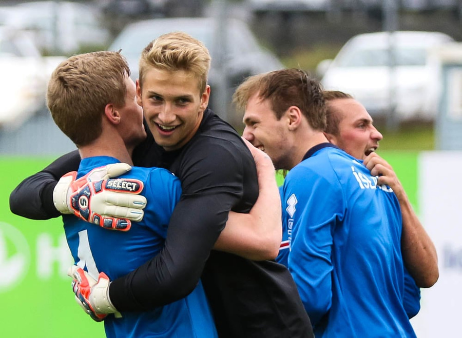 MAAAAAAAAARK!!!! OLIVER TRYGGIR ÍSLENSKAN SIGUR!! HANN KLIKKAÐI EKKI AFTUR, ÞVÍLÍKT ÖRYGGI Á PUNKTINUM!!!! ÞRUMAR Í VINSTRA HORNIÐ OG MARKVÖRÐURINN STÖKK TIL HÆGRI!!!