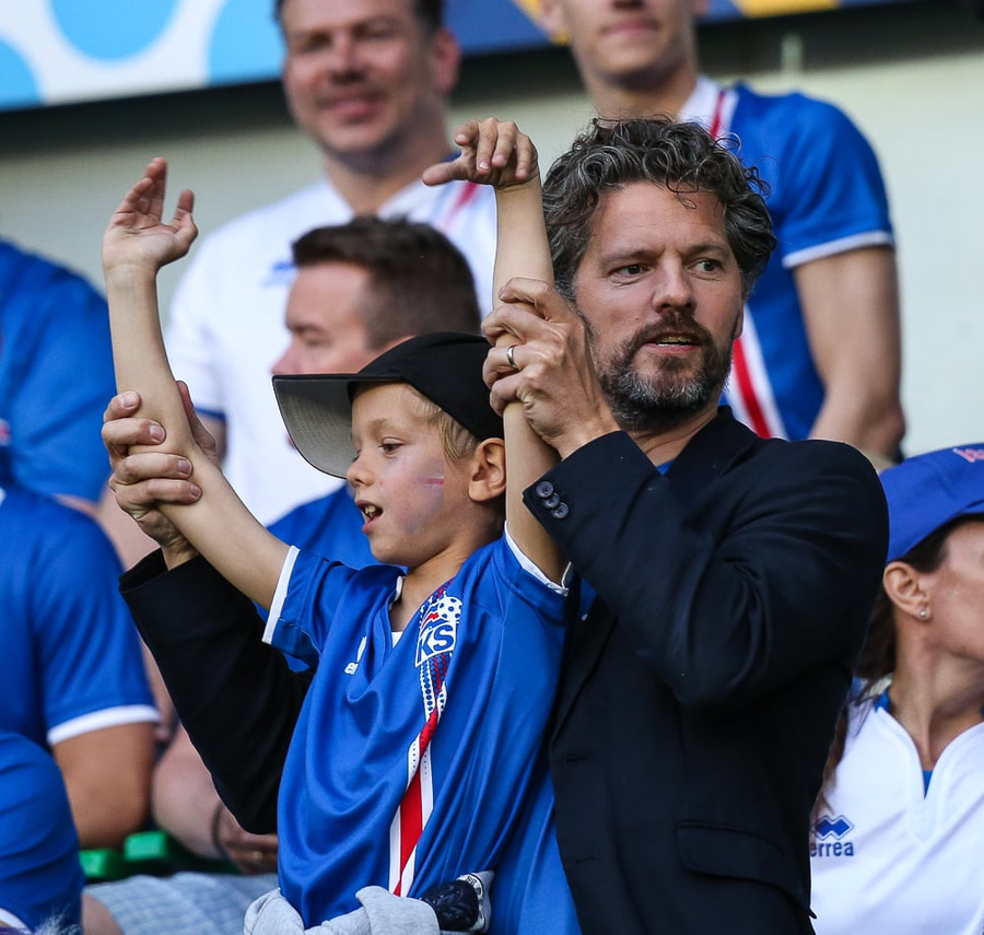 Nú kynnir Palli lið Íslands og áhorfendurnir taka vægast sagt vel undir.