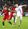 Birkir Bjarnason étur Vieirinha og á svo fyrirgjöf sem Jón Daði rétt missir af.