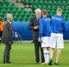 Sýningin er búin, leikmennirnir eru að fara að labba inn á völlinn. Það er næst á dagskrá. Fyrsti leikur liðsins á EM, ever.