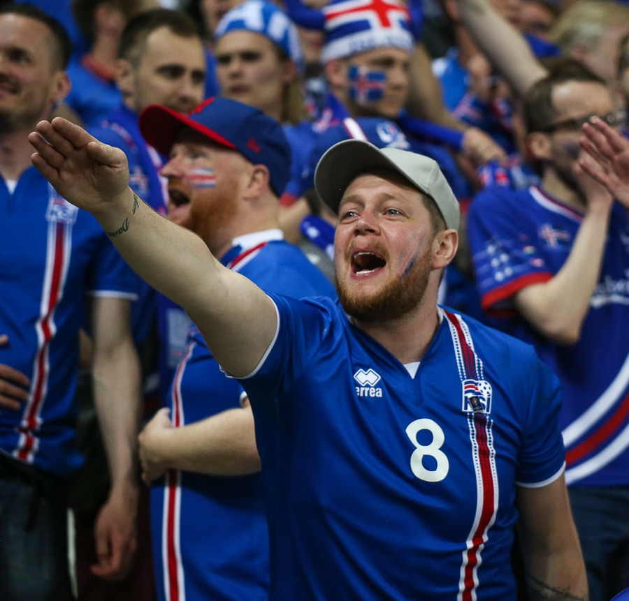 Íslendingarnir verið meira áberandi hingað til í stúkunni. Ef við vinnum ekki leikinn, þá getum við allavega verið viss um að hafa pakkað þeim saman í stuðning.