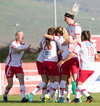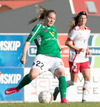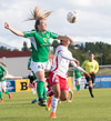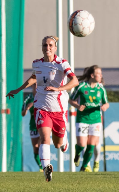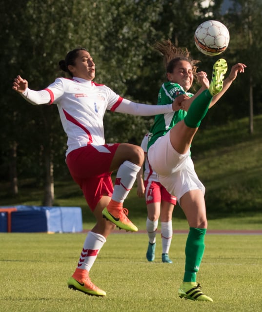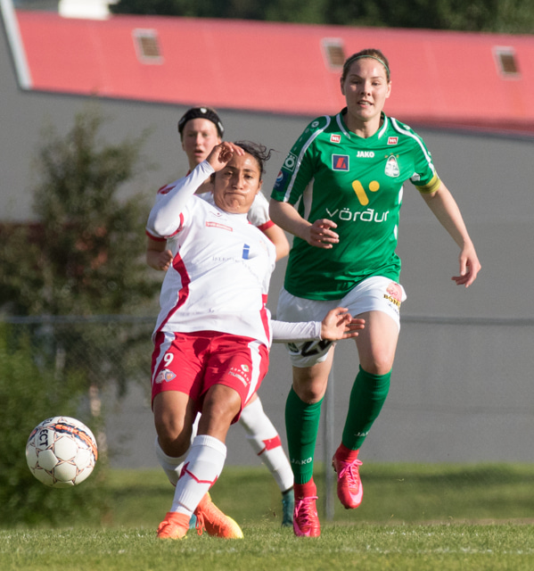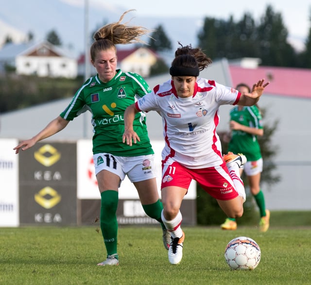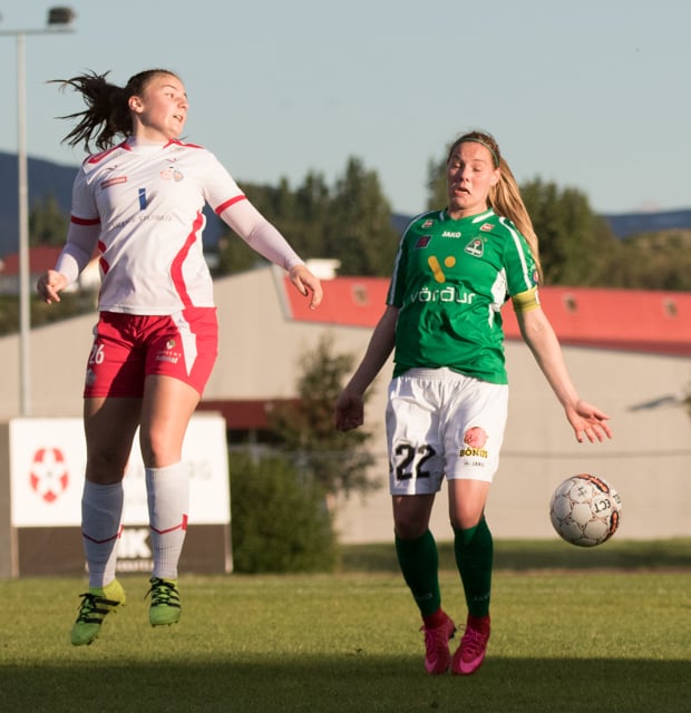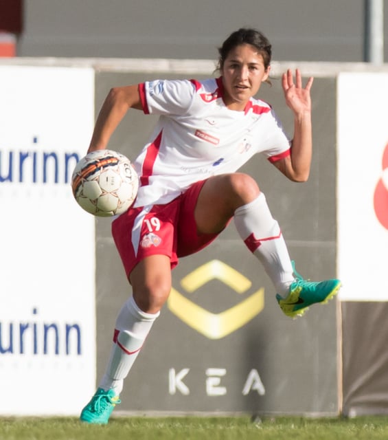 Sandra Mayor gerði frábærlega, hélt á lofti fyrir utan teig og lyfti boltanum yfir varnarmann. Tók síðan skotið á lofti en hamraði boltanum himinhátt yfir markið.