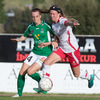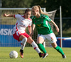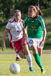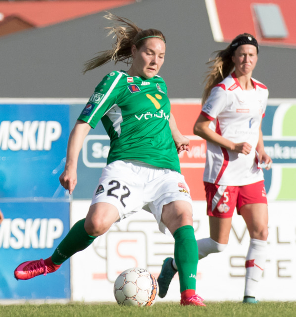 Fanndís Friðriksdóttir með fyrstu tilraun leiksins. Fór frekar auðveldlega framhjá Wyne en slakt skot hennar fer framhjá.