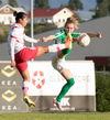 Anna Rakel tekur hornspyrnuna en hún er ekki góð.