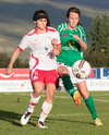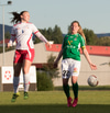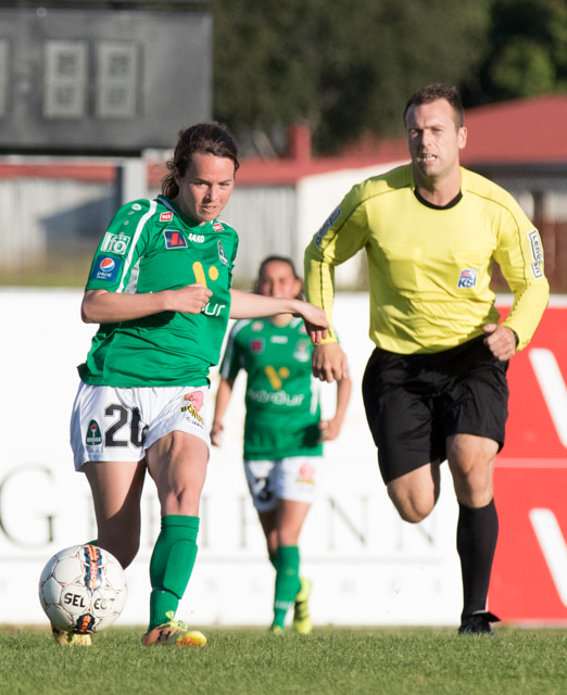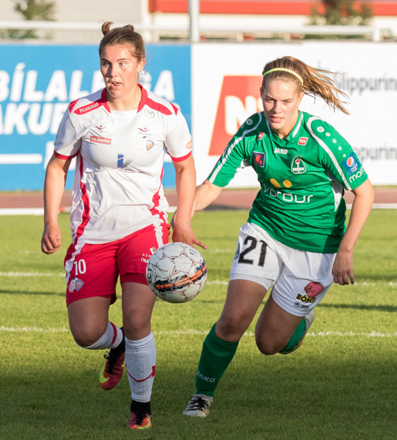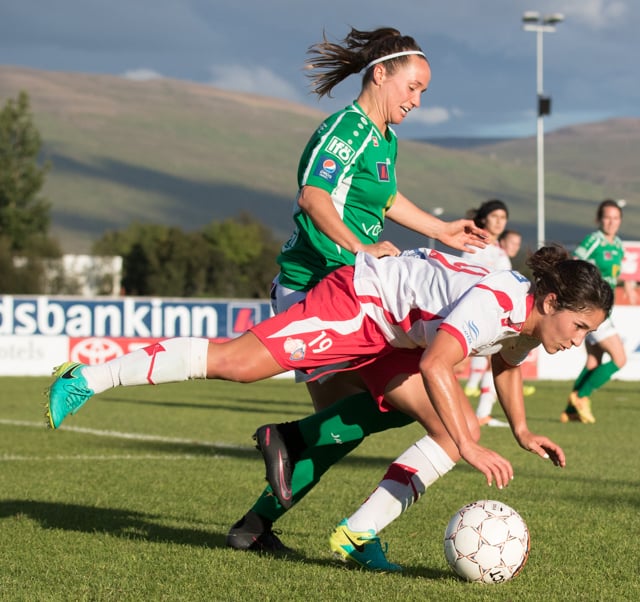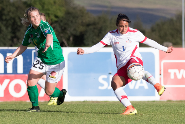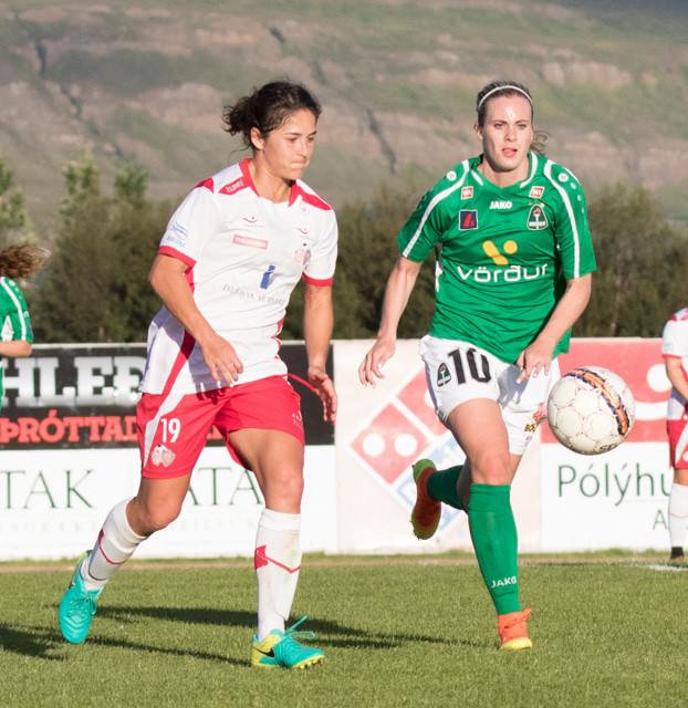 Hulda Ósk vinnur aukaspyrnu á fínum stað. Natalia ætlar að spyrna, myndi halda að þetta væri staður fyrir fyrirgjöf en hún er til alls líkleg.