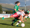 Strax færi! Írunn setur Söndru Maríu í gegn með flottri sendingu. Hún setur boltann fyrir markið en Hallbera nær að komast í boltann á undan Huldu og bjargar marki.