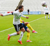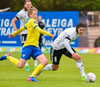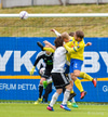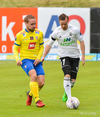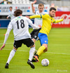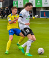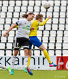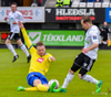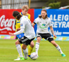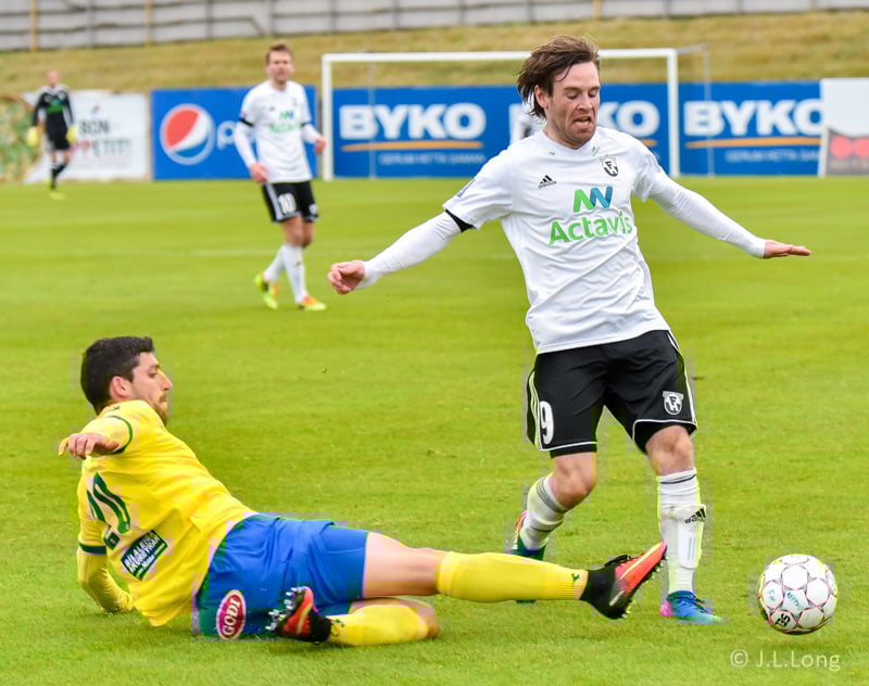 Allt of seinn í tæklingu og tekur Emil Pálsson niður.