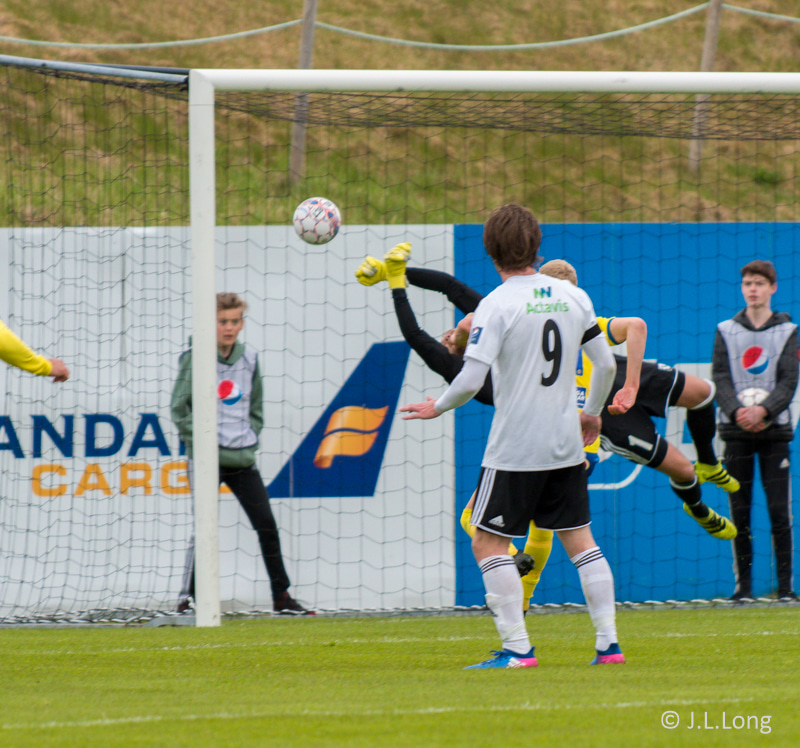 Vááááááá!!! Hallgrímur með góða fyrirgjöf á Ásgeir sem skallaði boltann af stuttu færi á markið en Gunnar var fyrir. En var boltinn inni? Líklega ekki en afgangurinn var afar lítill af þessu!!!