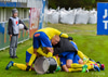 Þetta var stutt gaman hjá Steinþóri Frey. Vonandi ekki alvarlegt en hann kom inn fyrr í leiknum og var að fara út af núna.