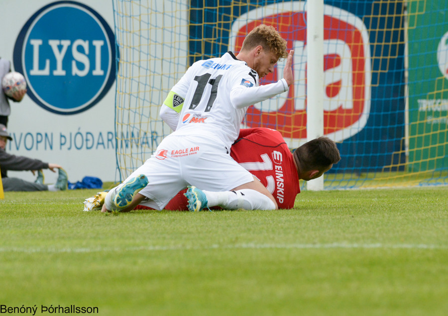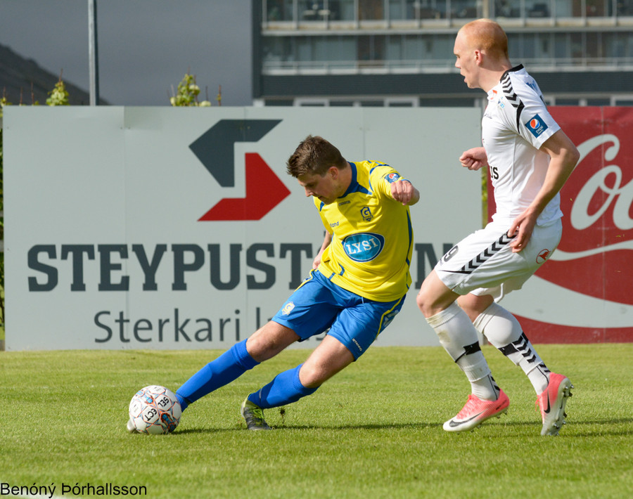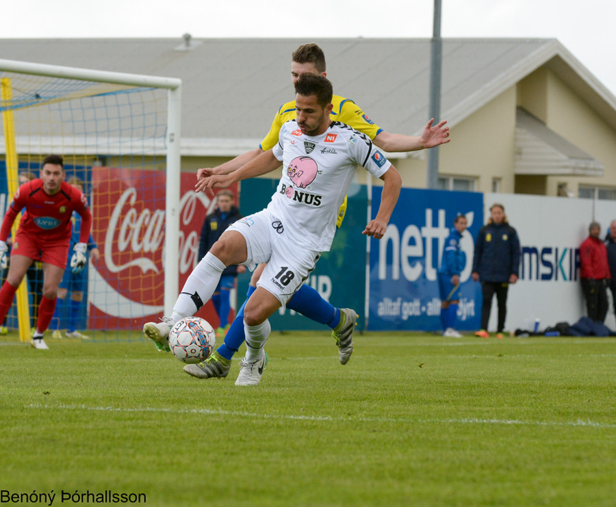 MARK!Andri Rúnar fékk stungusendingu og eftir hrikaleg samskiptamistök milli Matt Garner og Halldórs Páls þá nær Andri að skora í autt markið!