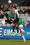 Gunnar Þór átti skalla talsvert yfir eftir hornið.