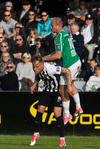 Tobias Thomsen klúðrar tveimur færum með stuttu millibili! Fyrst bjargaði Efete á línu úr dauðafæri. Svo skalli beint á Gulla.