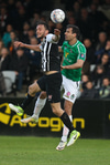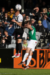 Morten Beck með svakalega fyrirgjöf en Tobias Thomsen fer illa með hana og skallar yfir! Thomsen átt mjög dapurt kvöld.