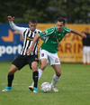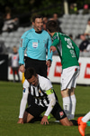 Arnór Sveinn Aðalsteinsson stálheppinn að fá ekki gult spjald! Alltof seinn og sparkar Martin Lund niður. Fær tiltali frá Þóroddi Hjaltalín.