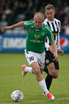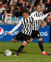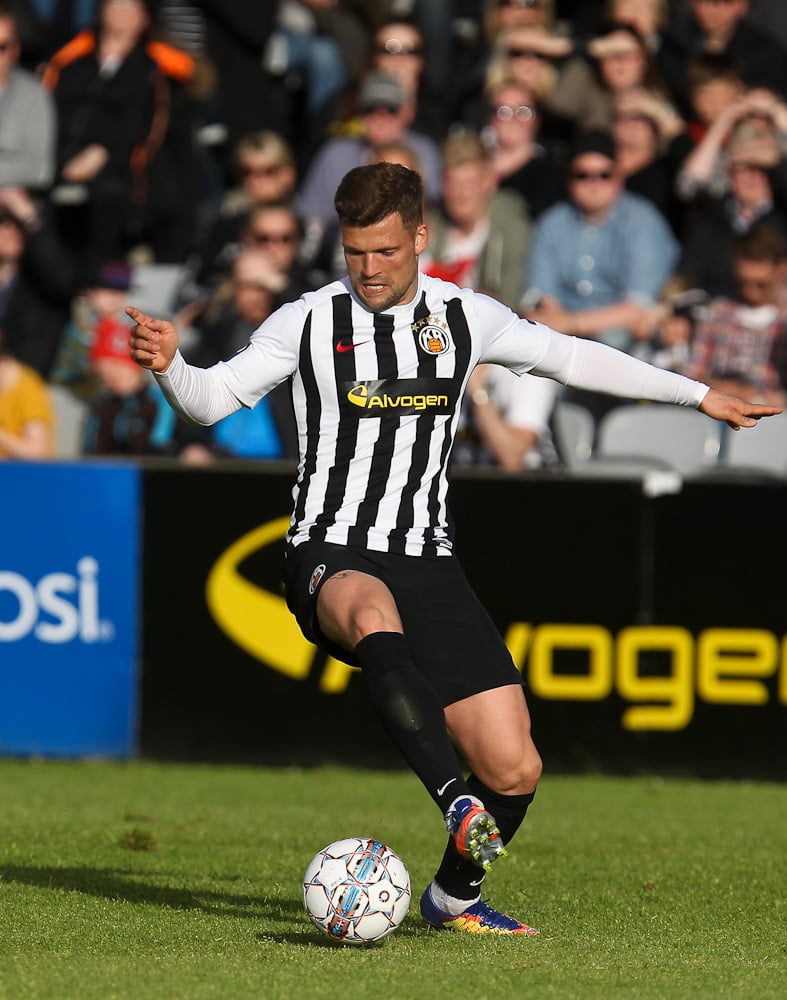 RÉTT FRAMHJÁ! Tobias Thomsen með skot sem strauk stöngina utanverða. Það vantar ekki færin í þennan leik. Fyrsta markið hlýtur að fara að detta!