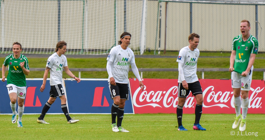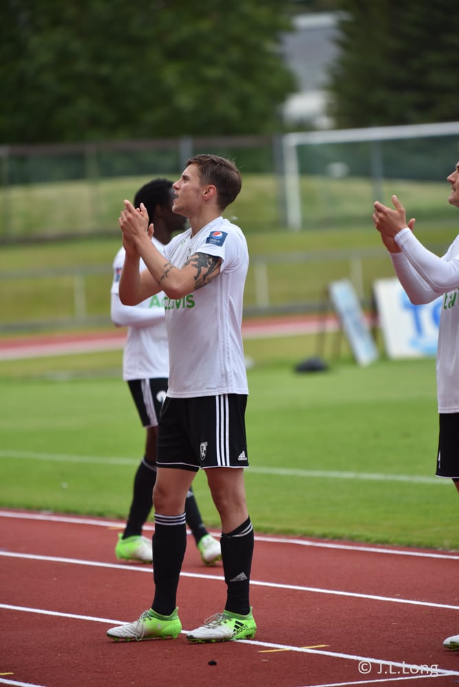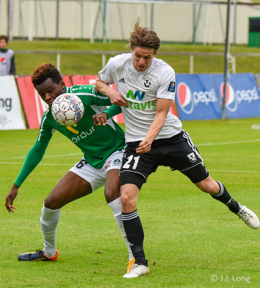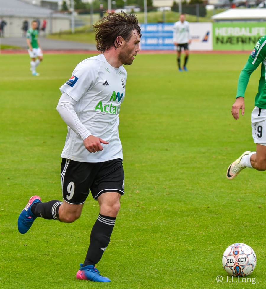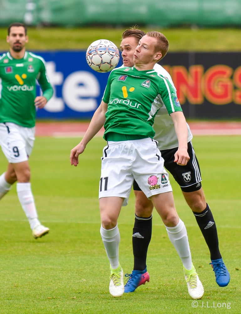 Kristján Flóki skallar í stöng úr skyndisókn eftir geggjaða sendingu Þórarins!
