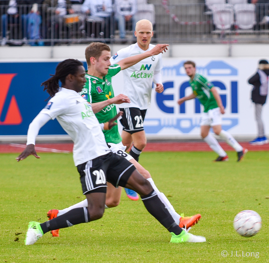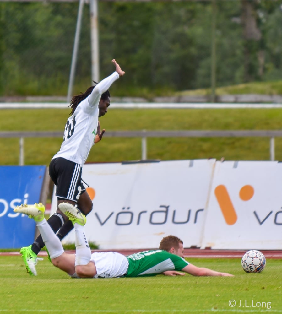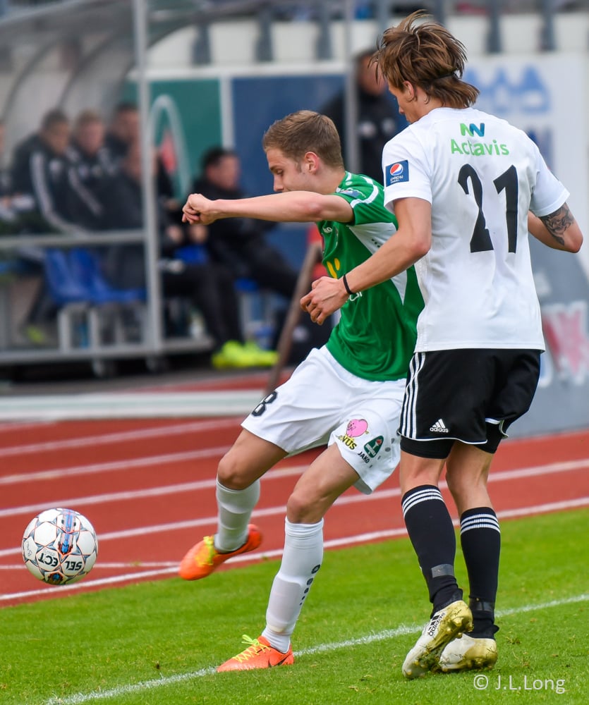 Martin Lund gerir vel að fara framhjá Þórarni en skotið hans fer framhjá - fínt færi hér á ferð.