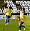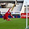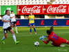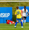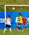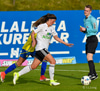 Caroline hleður í eitt vinstri fótar skot fyrir utan teig. Ég er ekki frá því að þessi hefði verið nálægt því að vera inni en Viviane gerir mjög vel, tekur eina góða sjónvarpsskutlu og hreinlega grípur hann. Virkilega vel gert hjá henni!