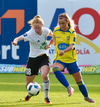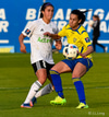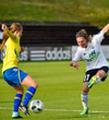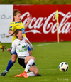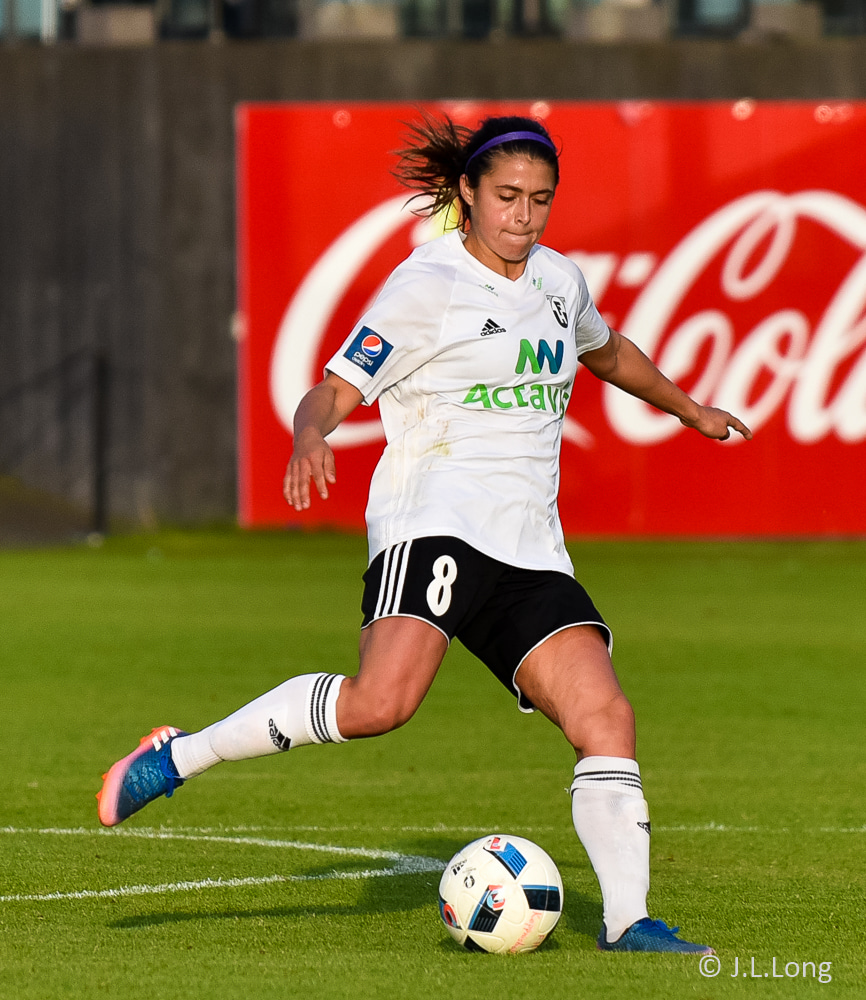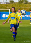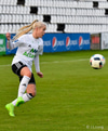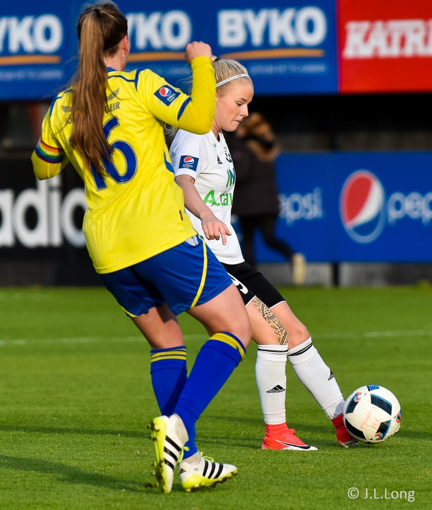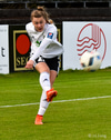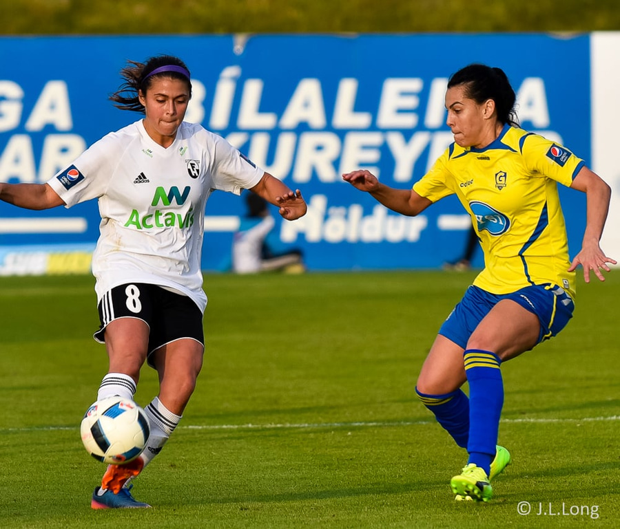 Helena leggur boltann þvert inn völlinn í fætur á Megan sem reynir skot en það er rétt yfir.