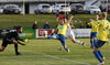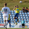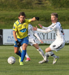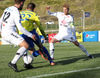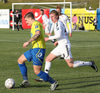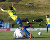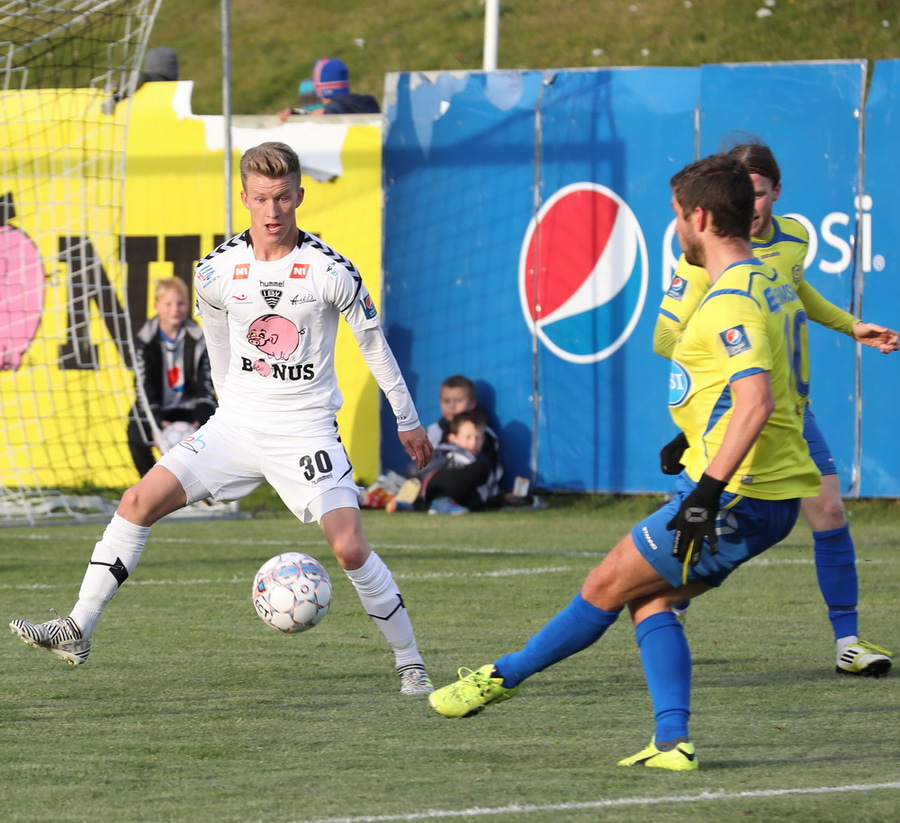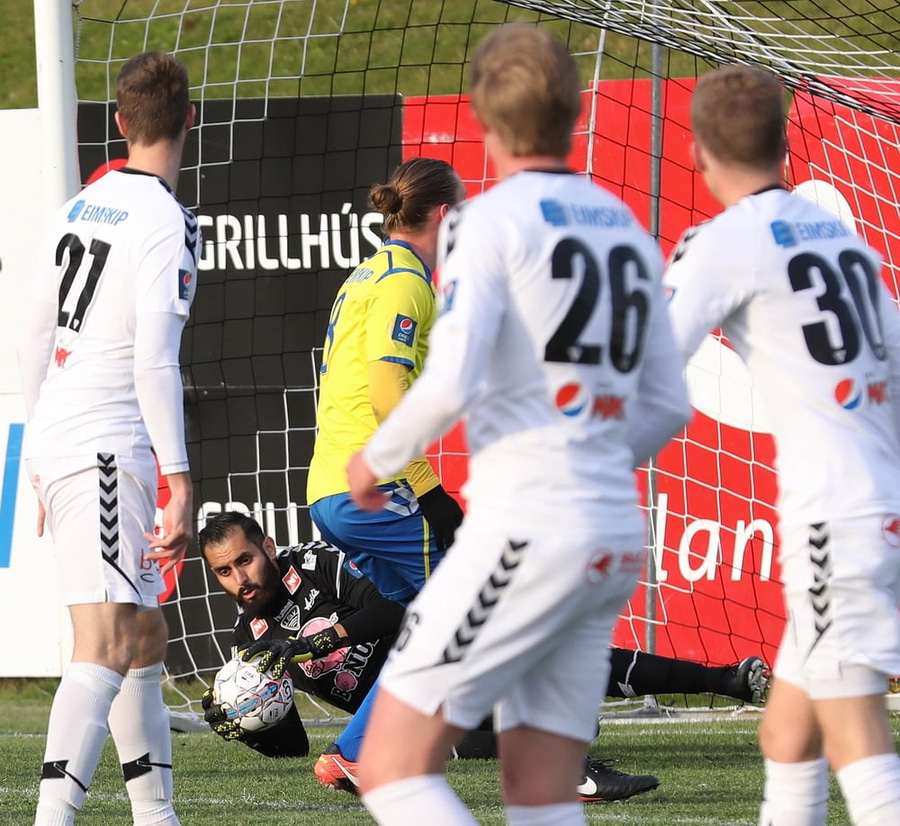 Vel gert hjá Jajalo , David Atkinson á langan bolta innfyrir vörnina sem að Arnór Gauti eltir eins og gammur en Jajalo mætir út á móti og kýlir hann frá.