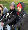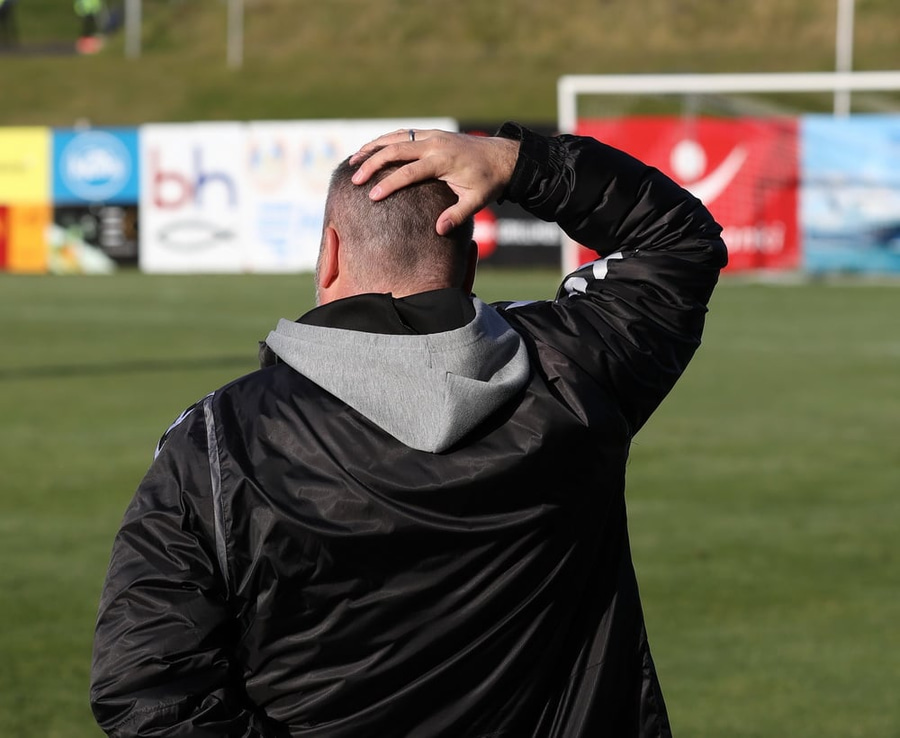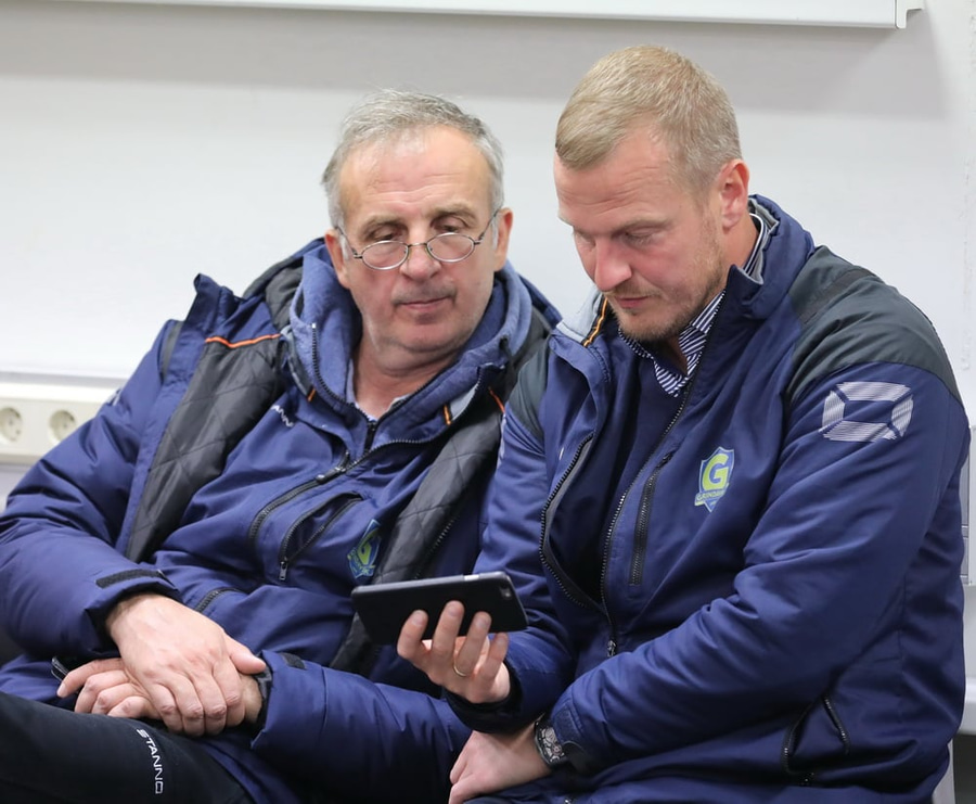 Það styttist í leik , fólk byrjað að safnast saman í stúkunni og leikmenn ganga til búningsklefa í lokapepp þjálfara.