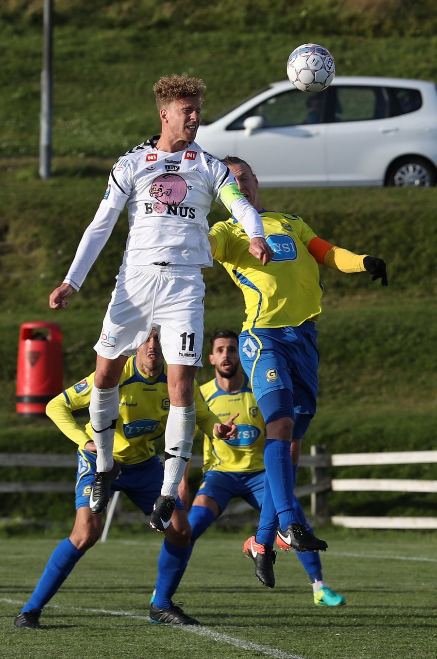 Simon Smidt með einn snuddu klobba á Jónas Þór Næs og kemur með góða fyrirgjöf en Marínó Axel nær ekki að sparka almennilega í boltann í ákjósanlegu marktækifæri og þetta rennur út í sandinn.