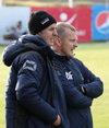 Mér sýnist Shahab hafa fengið krampa ekki vanur að spila í svona miklum vind og hann virðist vera fara útaf.
