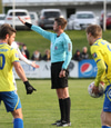 Óli Stefán spyr fjórða dómarann " Af hverju dæmir hann ekki!!" mikið til í þessu hjá Óla það er brotið á Marínó Ael rétt fyrir utan teig ÍBV en Vilhjálmur lætur leikinn halda áfram.