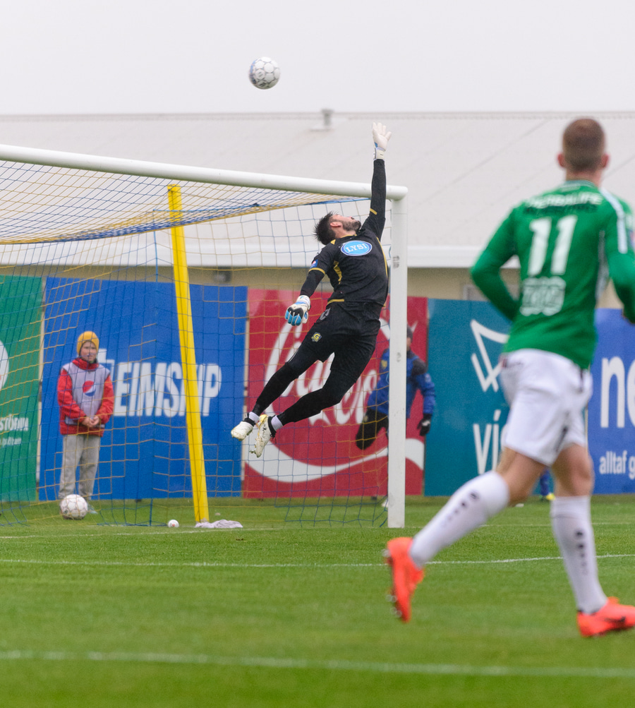 JÁ HANN NELGDI ÞESSU BARA Í FJÆRHORNIÐ! ÞVÍLÍKT MARK HJÁ ÞESSUM GÆJA! Mark númer 17! Gunnleifur var í þessum bolta en þetta var bara svo fast!