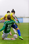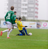 Björn Berg fellur í gryfju Martins Lund. Stuðningsmenn Grindavíkur ekki sáttir en mér fannst þetta vera réttur dómur. Allavega aukaspyrna. Spjaldið getur verið deilumál þar sem þetta er fyrsta brot Björns