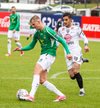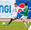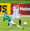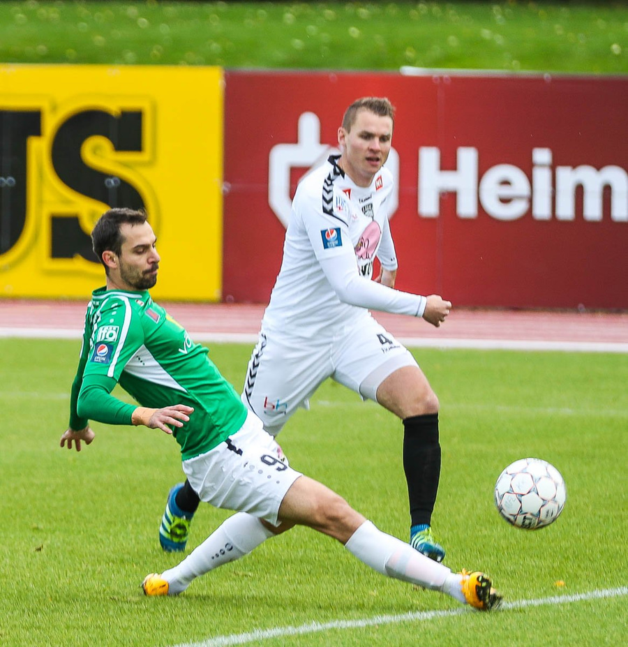Gunnar Heiðar reynir stungusendingu á Zahedi, Íranann sem hefur vakið mikla athygli í liði Eyjamanna. Sendingin frá Gunnari of föst.