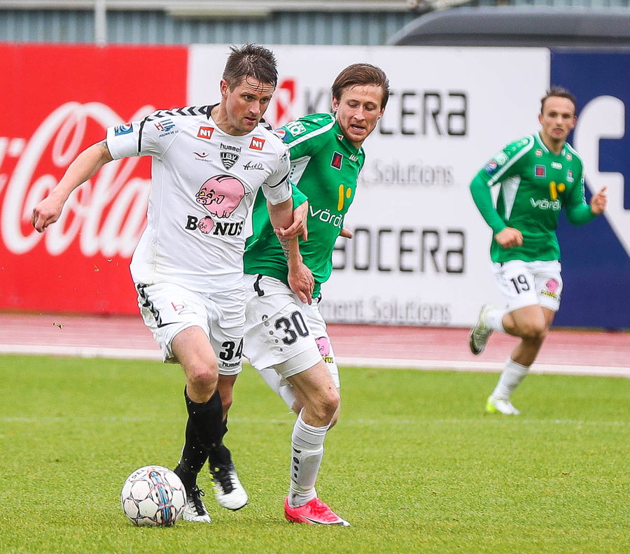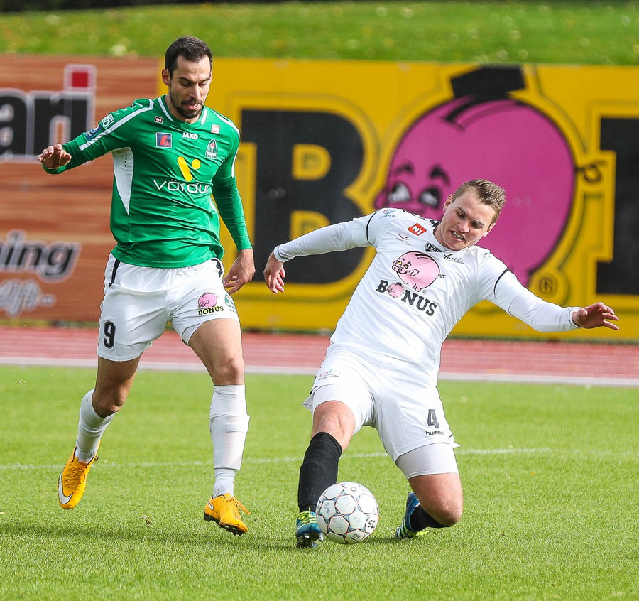 Zahedi að gera sig líklegan á vinstri vængnum en Andri Rafn Yeoman með flottan varnarleik og stöðvar hann.