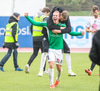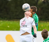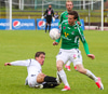 Martin Lund tekur spyrnuna sjálfur en Brian McLean nær að hreinsa frá.