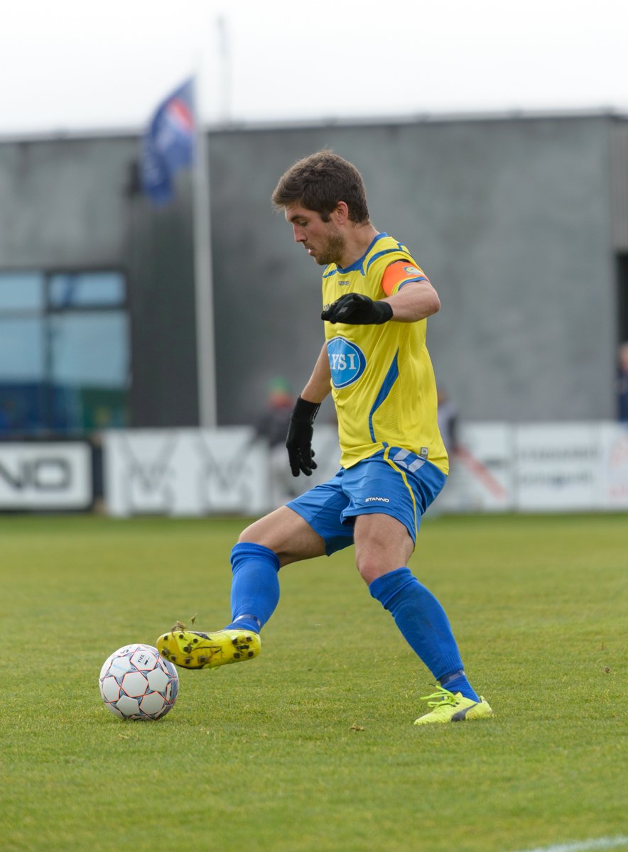 Marinó kominn aftur inn á og snöggur að brjóta af sér. Aukaspyrna við hliðarlínuna