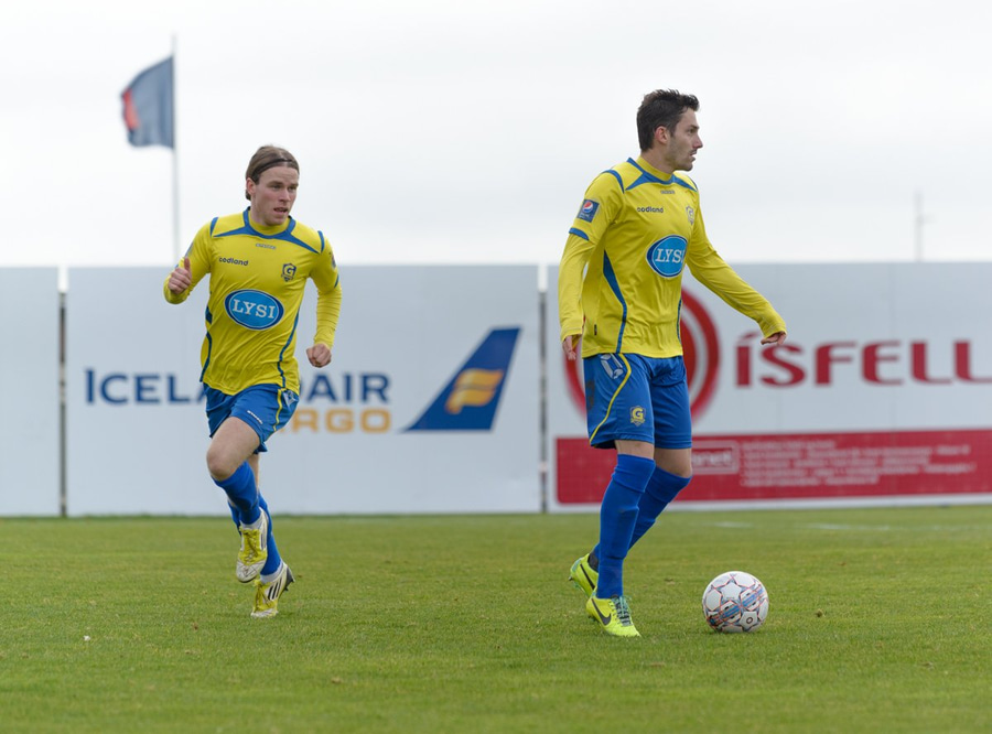 Grindvíkingar ná að hreinsa í burtu. Góð sending fram á Andra sem vinnur aukaspyrnu
