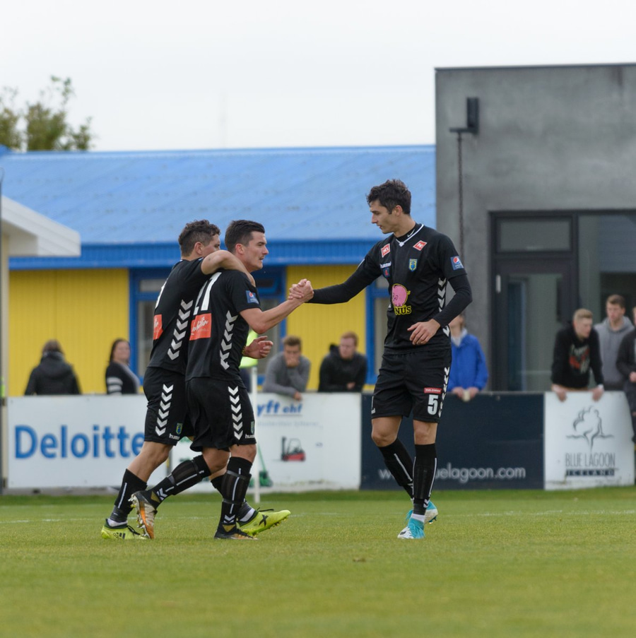 Fyrir þá sem eru aðeins að fylgjast með textalýsingunni hérna úr Grindavík þá er staðan í deildinni þannig að ÍBV er að vinna KA og jafnt er upp á Skaga þar sem Víkingur Ólafsvík þarf að vinna. Vinni ÍBV sinn leik halda þeir sæti sínu í deildinni en Víkingur Ó. þarf að bíta í það súra epli að falla niður í Inkasso-deildina