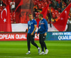 Tyrknesku stuðningsmennirnir baula á sína leikmenn! Það er rosalegt dæmi í gangi hérna. ROSALEGT!!!