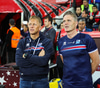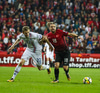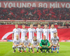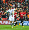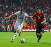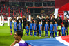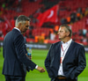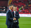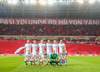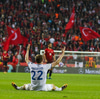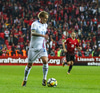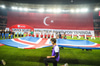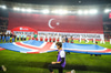 Þjóðsöngvarnir að baki! Það voru hreinlega mögnuð stund þegar þjóðsöngur Tyrkja var spilaður. Fólk tók svo sannarlega undir. Það eru fánar um allan völl. Hér í Tyrklandi eru ekki áhorfendur heldur stuðningsmenn... stuðningsmenn sem eru reyndar fljótir að snúast gegn sínu liði í mótlæti.