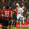 Tyrkir skalla naumlega yfir eftir hornspyrnu.