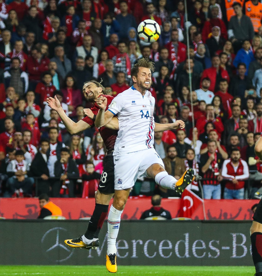 Tyrkir komust í vænlega stöðu en Birkir Bjarnason las sendingu og bjargaði málum. Vel gert Birkir!