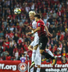 Hörður Björgvin skallar yfir eftir horn. Ekki mikill kraftur í þessum skalla enda Hörður ekki í góðu jafnvægi þegar hann fékk boltann til sín.