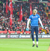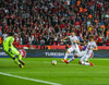 Lögreglan á vellinum er farin að umkringja völlinn og stendur nú í röð fyrir framan stúkuna. Hátt í 4000 lögreglumenn eru á vellinum. Ekki nema.