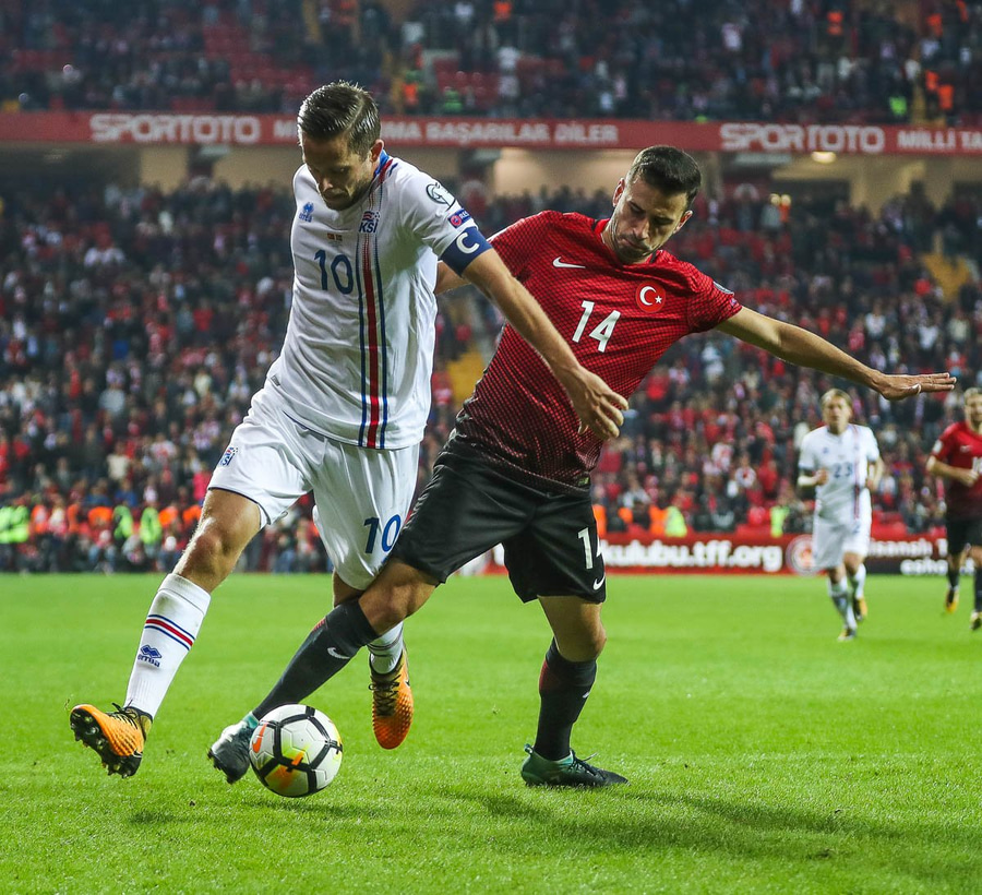 Gylfi Þór með skemmtileg tilþrif við hornfánann. Leikur sér með boltann og fær tvo Tyrki í smá dans. Endar síðan á fyrirgjöf sem fer beint í hendurnar á Babacan í markinu.