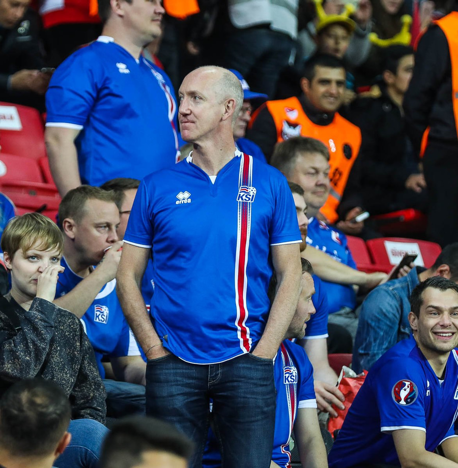 Íslendingar eru kannski í miklum minnihluta á vellinum en Valtýr Björn lætur vel í sér heyra og er duglegur að öskra á dómarann. Alvöru maður.