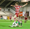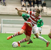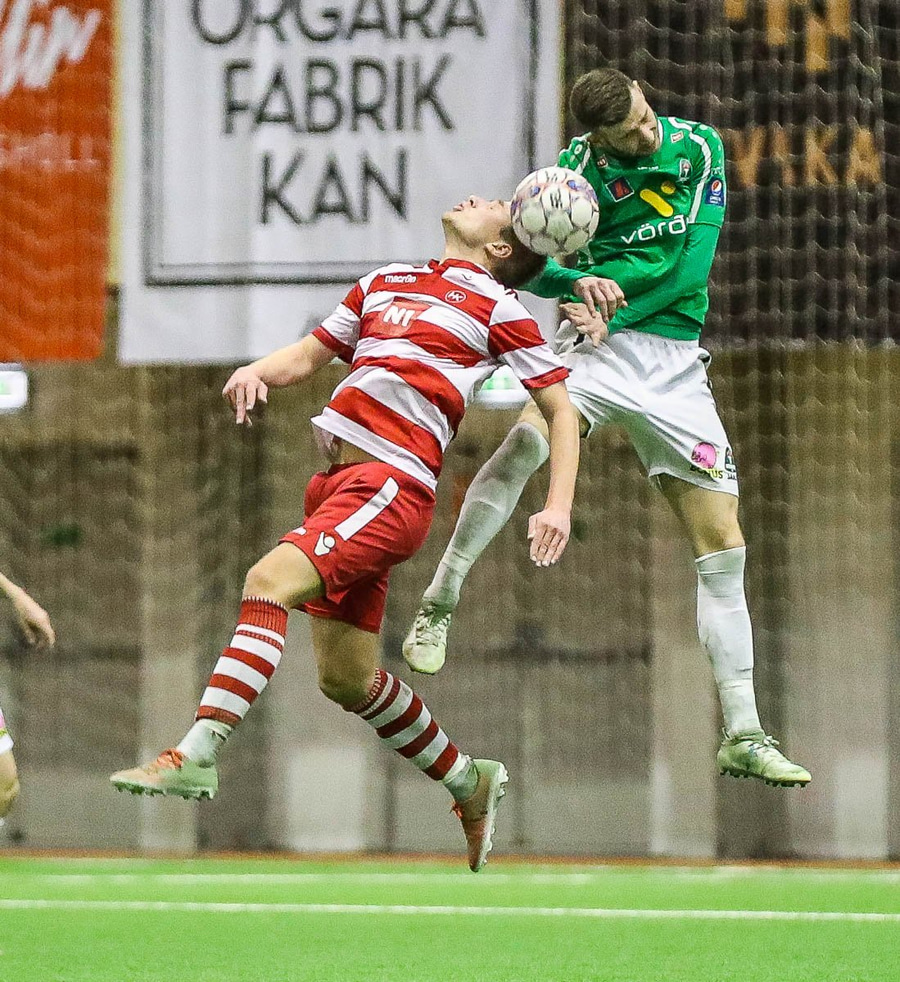 Hinn 14 ára gamli Danjel Djuric lætur sig falla eftir baráttu í teignum. Egill íhugar að dæma vítaspyrnu en hættir svo við. Áfram með leikinn.